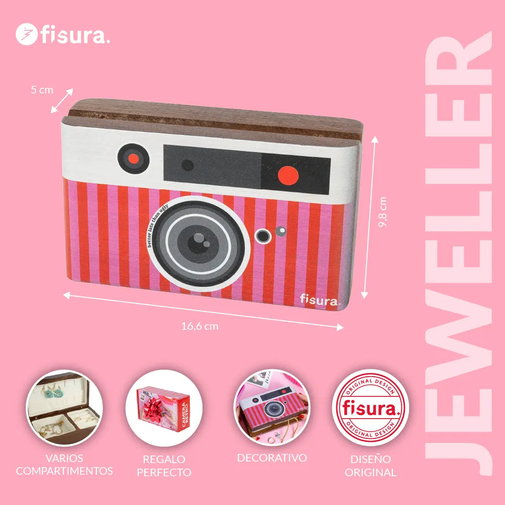 Es el joyero organizador perfecto para regalar 🎁 a esa amiga apasionada por la fotografía o para aquella que siempre va divina, aunque llegue tarde. ¡Podrá tener sus joyas bien guardadas y le sacará una sonrisa cada vez que lo vea!