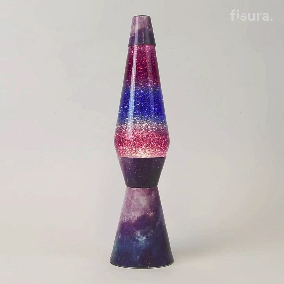 Lámpara de Lava 'Bullet' con base efecto galaxia, líquido morado y purpurina
