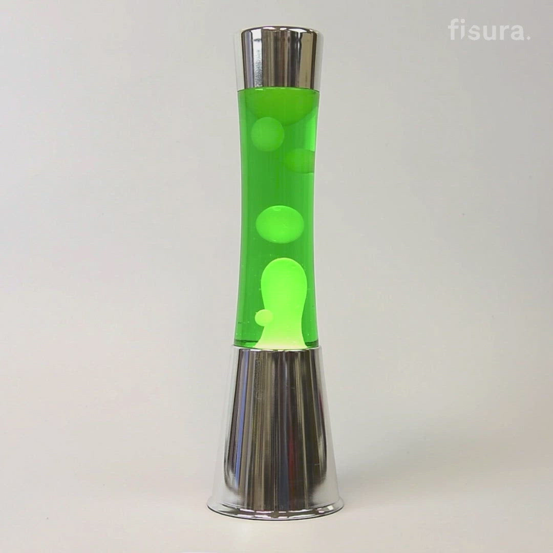 Lámpara de Lava con base cromo, líquido amarillo y lava verde