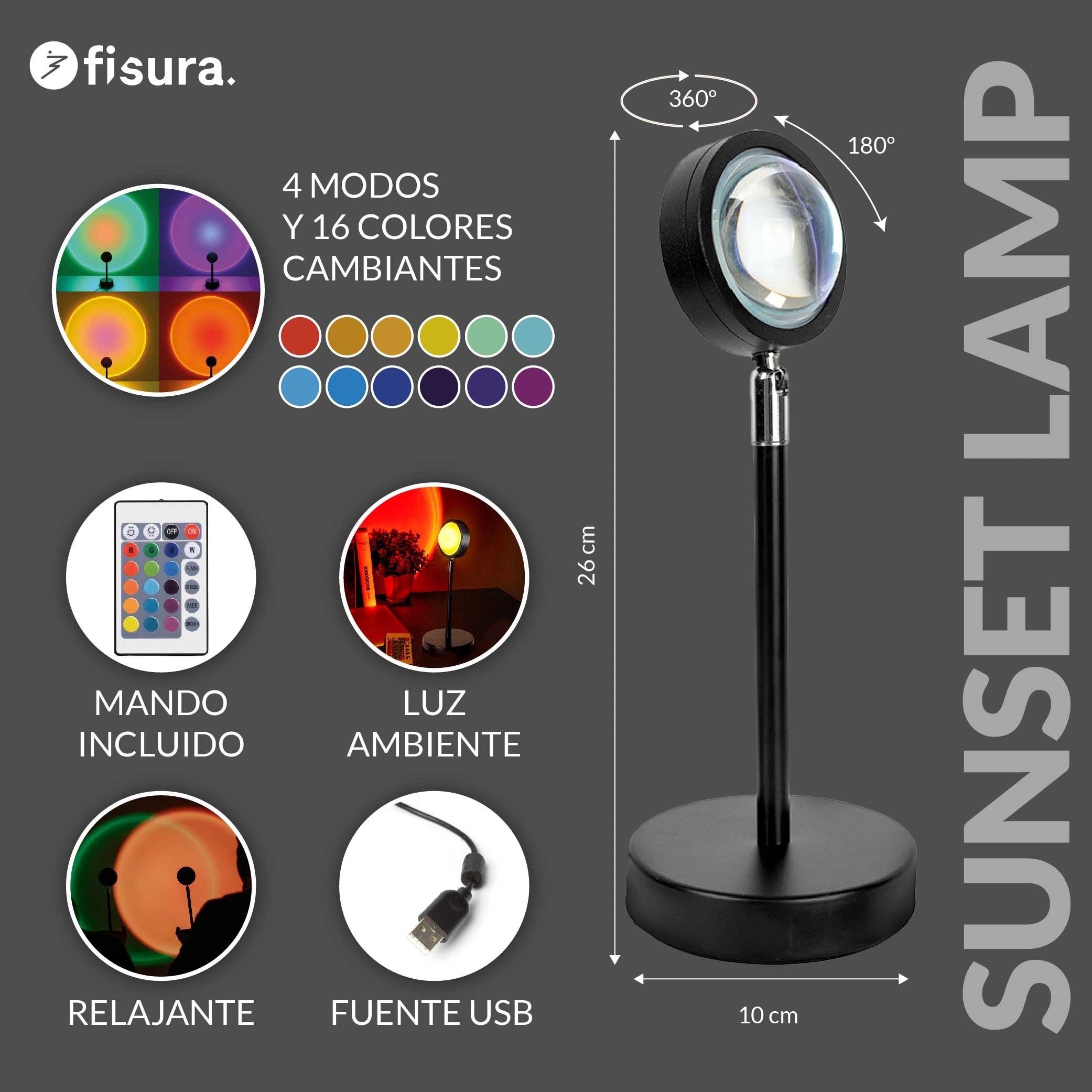 Esta lámpara "sunset" cuenta con 16 tonos diferentes de iluminación que van desde un celestial halo azul hasta un rojo similar al de un atardecer en la playa, por lo que es ideal para una atmósfera romántica, un local nocturno o una habitación infantil.Adicionalmente, tiene 4 efectos diferentes: luz suave, desvanecimiento de la luz, parpadeo y luz estroboscópica. ¿Y cómo puedes elegir uno u otro? ¡Fácil! Con un control remoto.