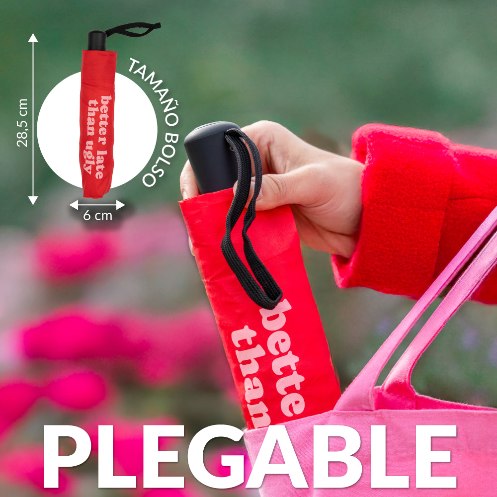 Llegar tarde se perdona, pero llegar mal arreglada o empapada… ¡jamás! 💅Este paraguas original con el mensaje "better late than ugly" es tu mejor aliado para los días de lluvia, asegurando que ni el agua ni las prisas arruinen tu look. Que esperen lo que haga falta… ¡tú llegarás radiante! 😉