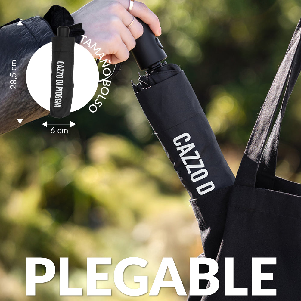 ¡Que la lluvia no estropee tus planes! Coge tu paraguas original, ponte las botas y sal a conquistar el mundo bajo la lluvia. Con su color negro y el mensaje en italiano “cazzo di pioggia” un toque hater y divertido a tu look mientras dejas claro que odias el mal tiempo.