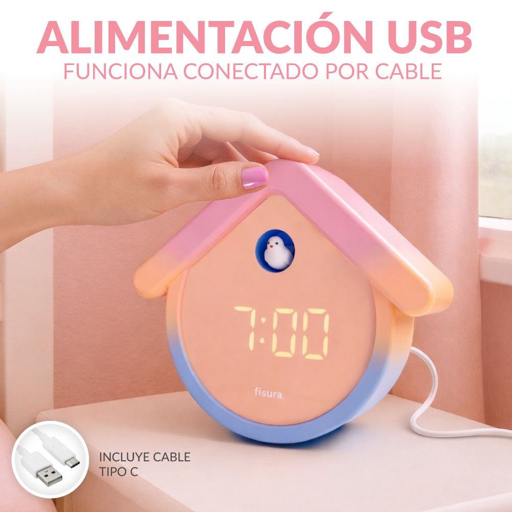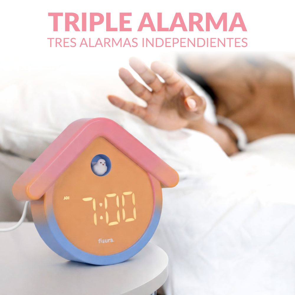 Tiene 3 niveles de brillo y un modo ahorro de energía que mantendrá la luz apagada duermes a pierna suelta y si estás a oscuras. ¡Y quieres saber la hora solo tienes que dar una palmada y el reloj se encenderá! Además, puedes configurar hasta 3 alarmas diferentes para todo lo importante: despertarte, salir corriendo al curro o poner fin a esa siesta épica. Y cuando suene… prepárate para un “cucú” 🐥 adorable que te alegrará el día desde primera hora.