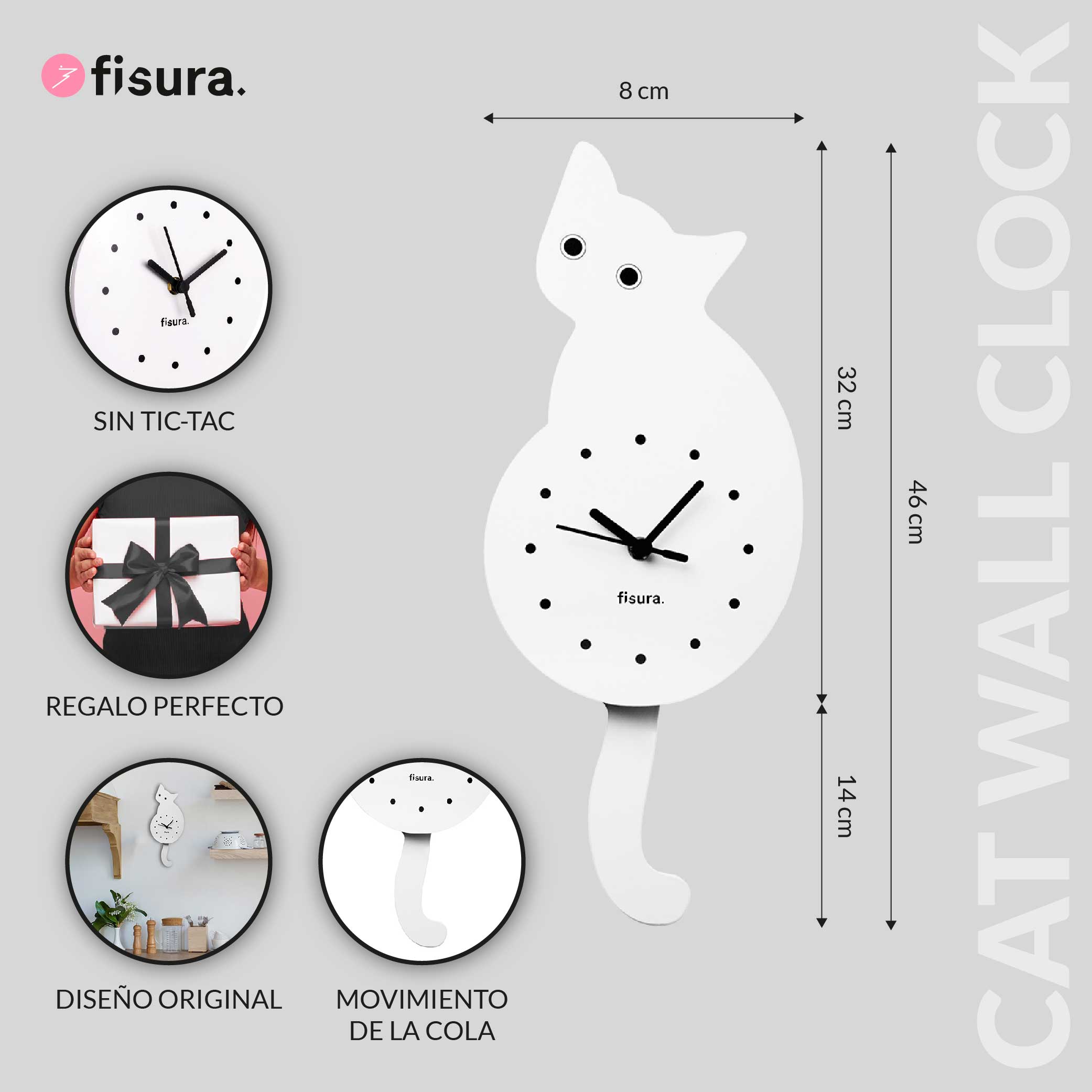 Dale a tu hogar un toque gatuno y divertido con este reloj original en forma de gato con el que dejarás claro cuál es tu animal favorito 🐱. Con su diseño moderno y su cola que se mueve como un péndulo se convertirá en el centro de atención de tu habitación.