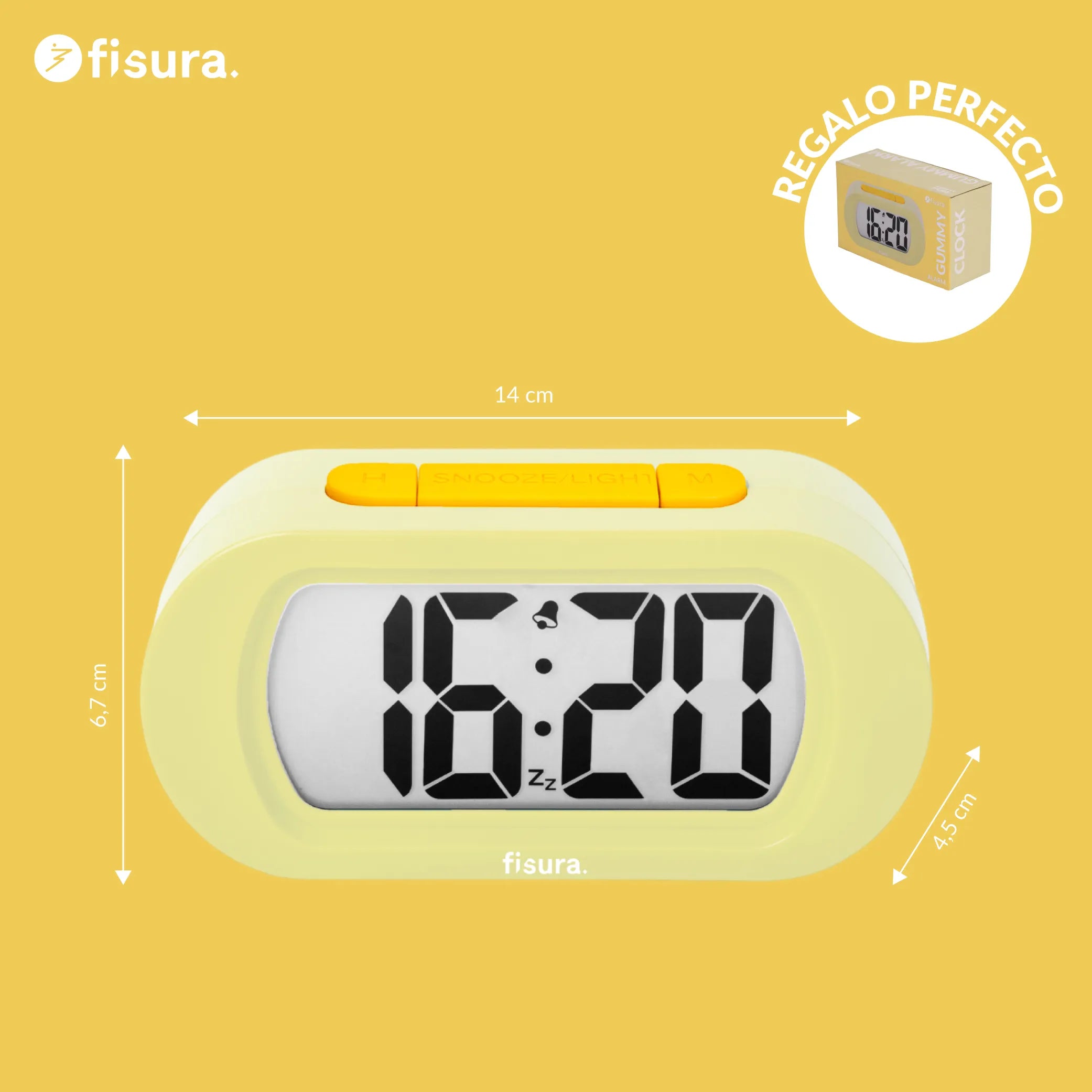 Si eres de los que necesita un empujón para arrancar el día, este despertador digital amarillo pondrá un poco de buen rollo en tus mañanas 💛. Con su tamaño de 14 cm x 6,7 cm, es un reloj de mesilla digital perfecto para tener siempre la hora a la vista sin ocupar espacio. Además, al ser un despertador minimalista quedará genial en tu mesita de noche 🛏️, en el escritorio o incluso en una estantería, llenando cualquier rincón de color y energía.