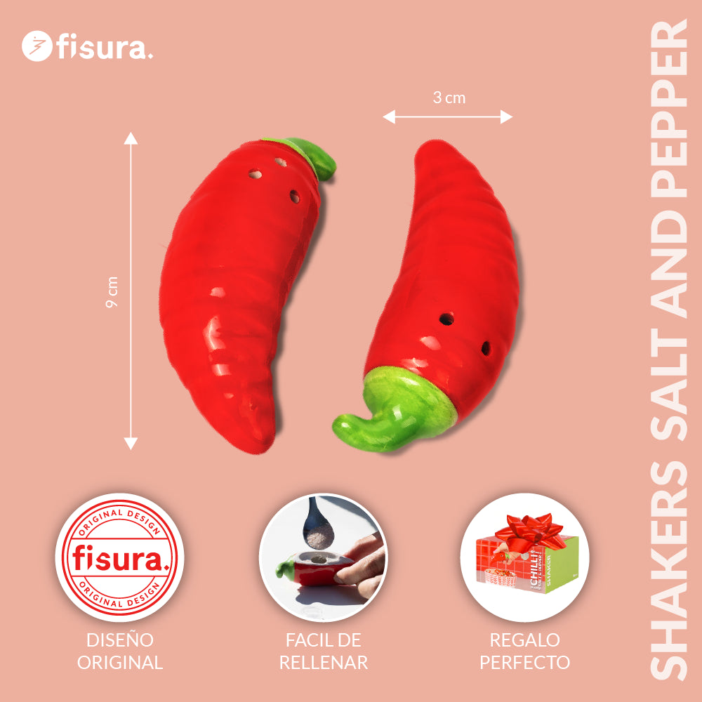 En este pack de salero y pimentero de cerámica el chilli con 3 agujeros es perfecto para la sal 🧂, mientras que el otro con 2 agujeros es ideal para la pimienta o para la cayena molina por lo que sazonar tu comida nunca ha sido tan fácil.