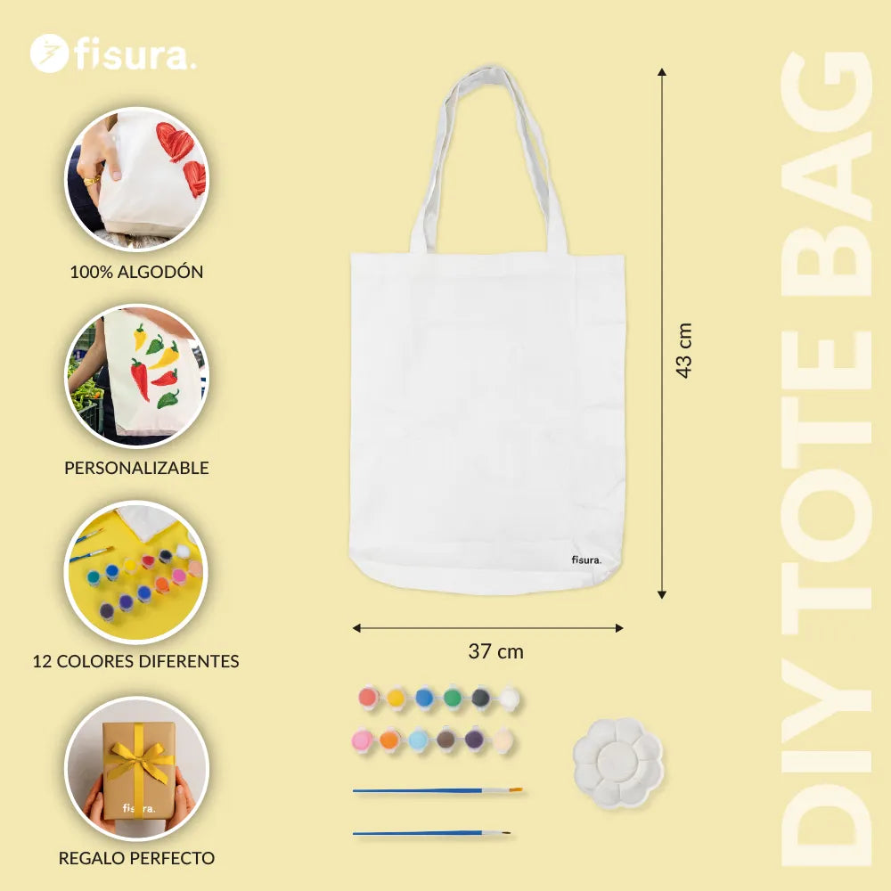 Es una bolsa de algodón 100% 🌿, por lo que es resistente, ligera y perfecta para llevar desde libros hasta la compra o tu ropa del gym. Y lo mejor: viene con 12 colores, 2 pinceles y 1 paleta mezcladora 🎨 para que des vida a tu bolsa como quieras. Flores, frases gamberras o corazones… ¡todo vale!