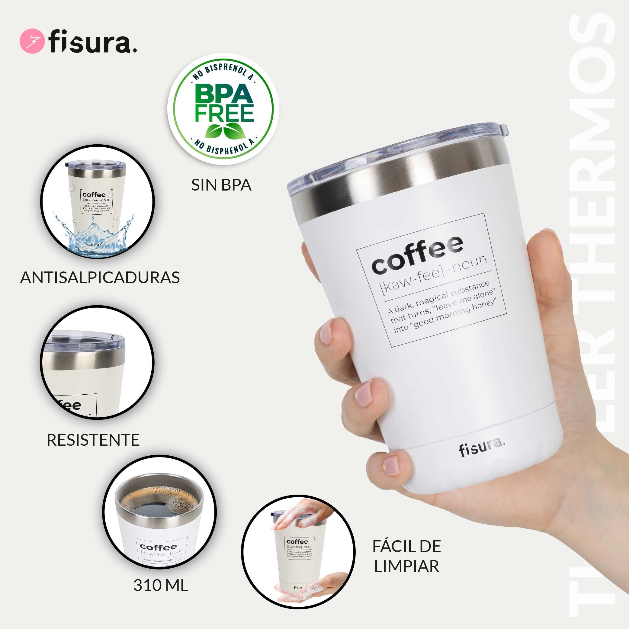 Con una capacidad de 310 ml, esta taza termo es ideal para disfrutar de tu café o té en cualquier momento del día. Su tapa anti fugas garantiza que no habrá derrames indeseados, y con su doble pared de acero inoxidable puede mantener las bebidas calientes durante 12 horas 🔥 y frías durante 24 horas ❄️. ¡Podrás disfrutar de tu bebida a la temperatura perfecta!