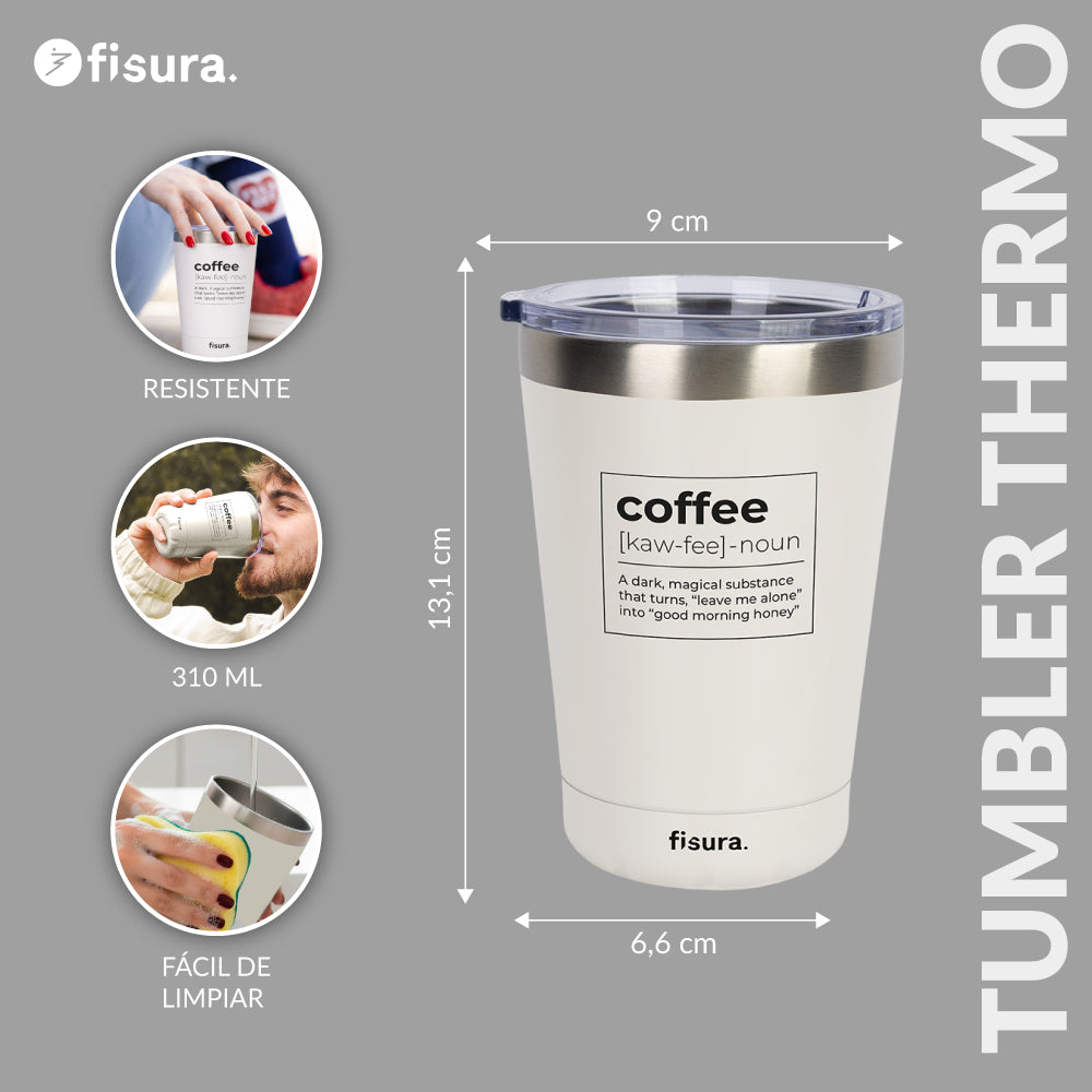¡Prepárate para darle un toque único a tus mañanas con este vaso térmico de café ☕! Con su definición de café como “a dark, magical substance that turns ‘leave me alone’ into ‘good morning honey" este termo blanco es perfecto para darle una dosis de humor (y cafeína) a tu despertar.