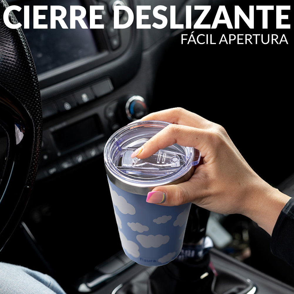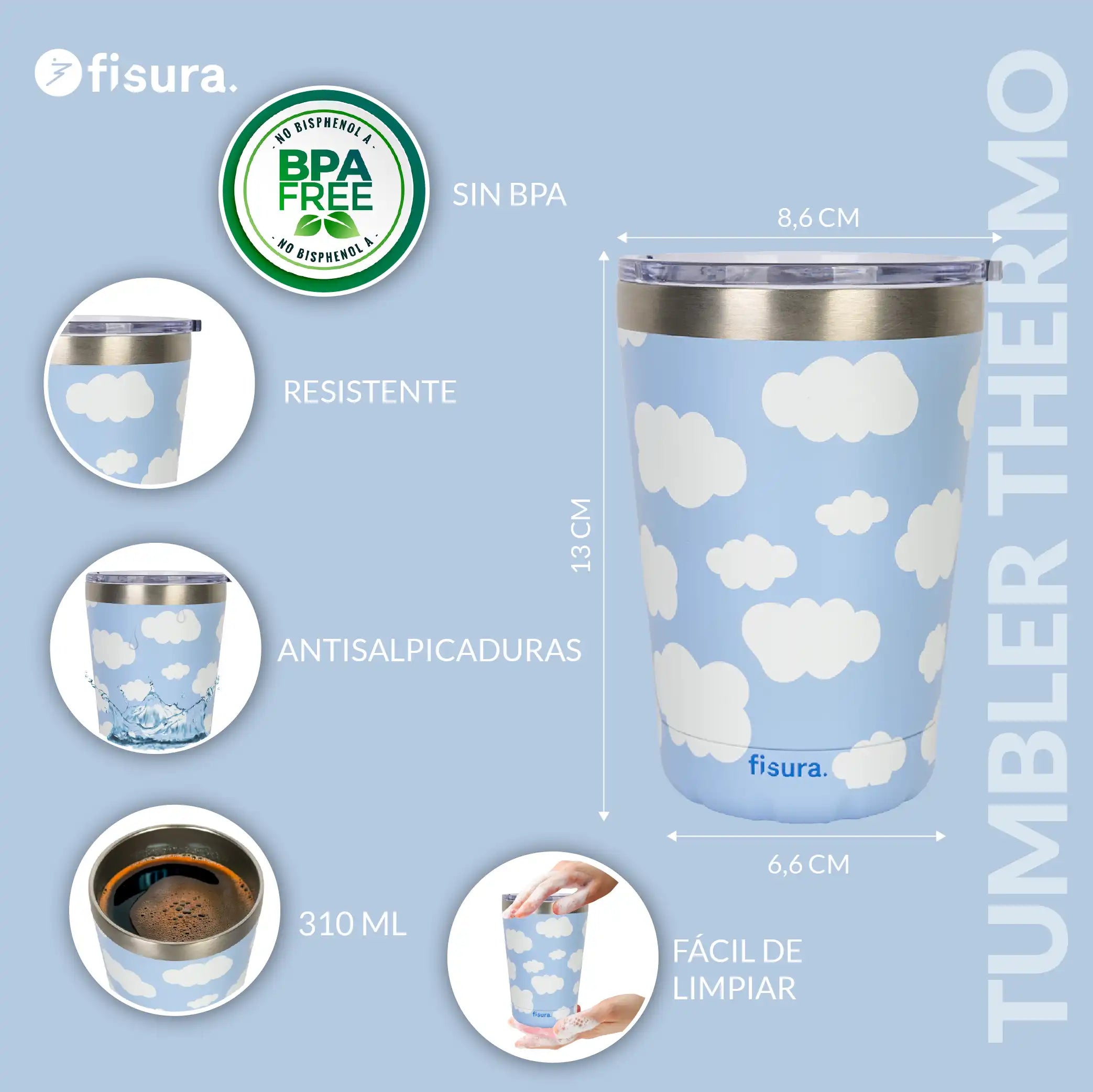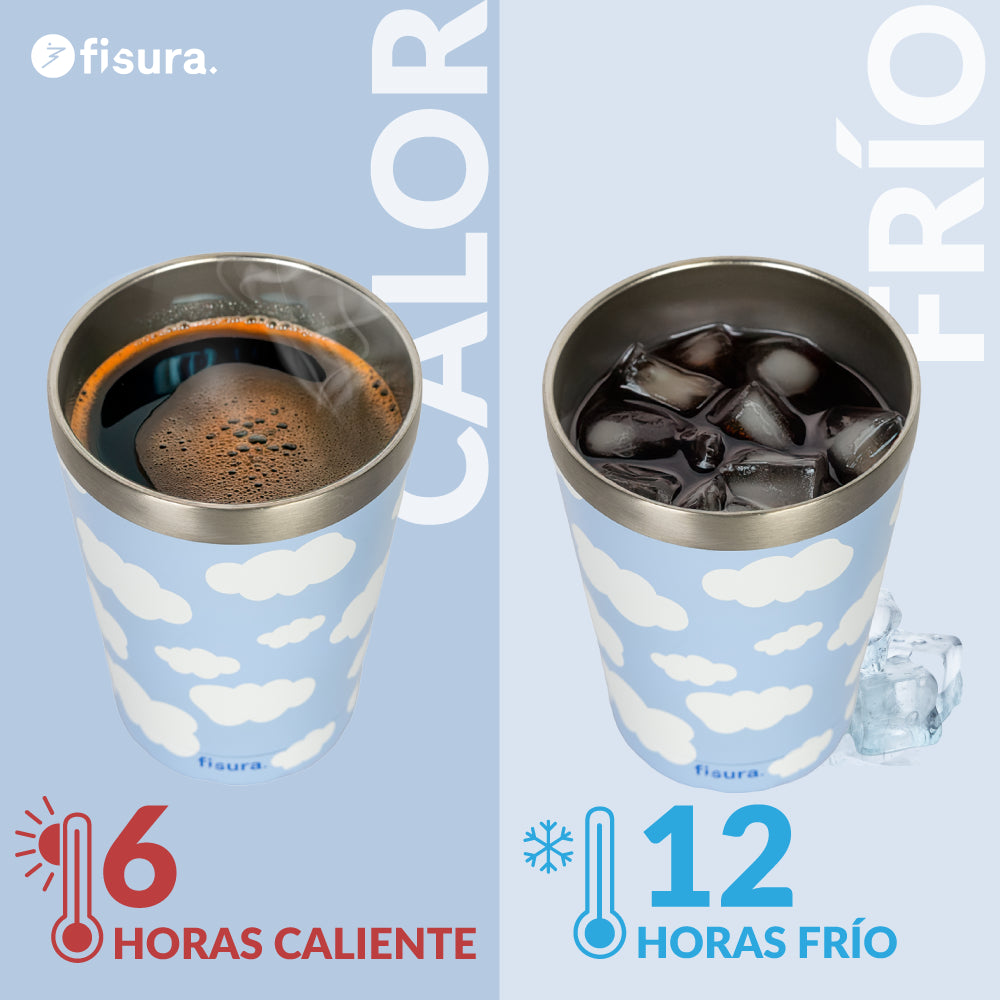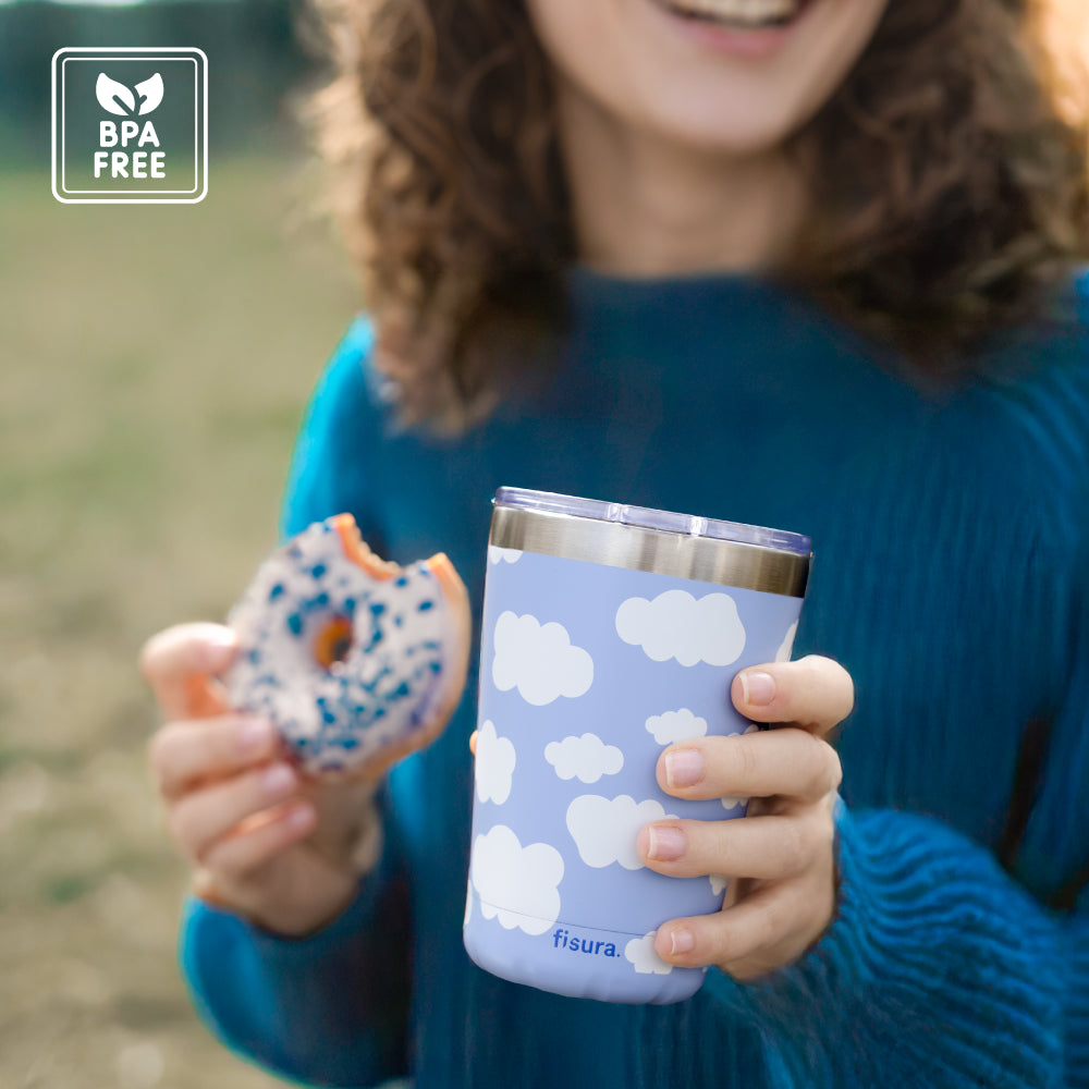 Haz una pausa y deja que este vaso térmico de café convierta tu hora del café en un momento de paz. 💙 Con su estampado de nubes ☁️ te recordará que, por muy ajetreada que sea la mañana, siempre hay tiempo para respirar y desconectar. ¡Será como si flotaras lejos del caos, pero con café en mano!
